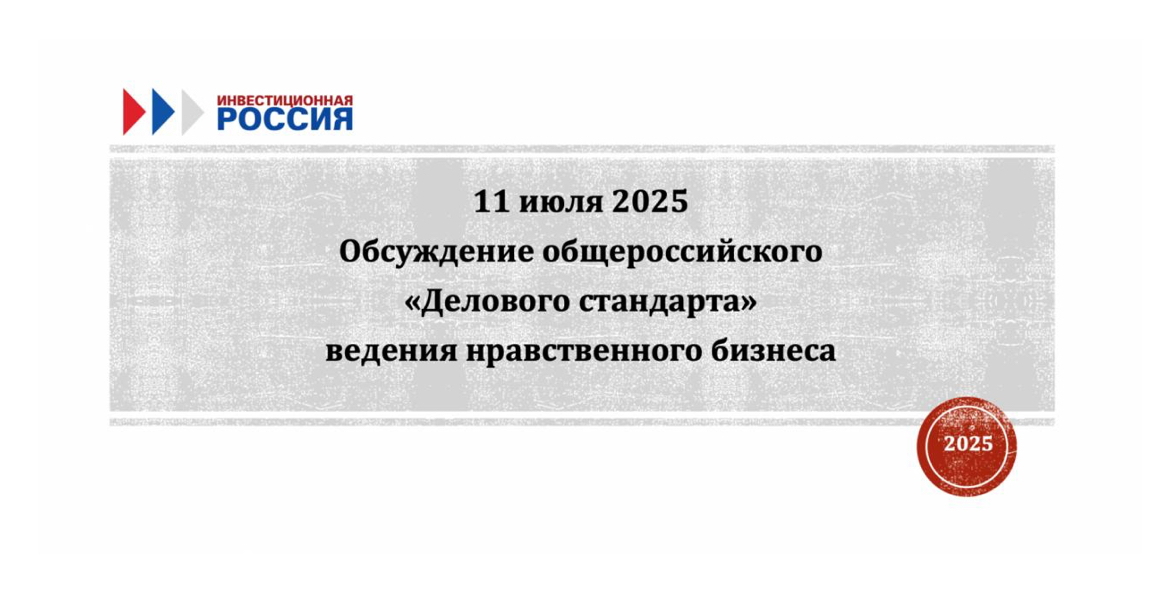 Общероссийская общественная организация «Инвестиционная Россия» 11 июля 2025 года в 15:00 по адресу: город Москва, Гоголевский б-р, д. 8, (метро Кропоткинская) в «Центре продвижения культурно-патриотических проектов и инновационных программ «Территория Первых» созданным под руководством депутата Государственной Думы РФ Майданова Д.В. проводит закрытое мероприятие по обсуждению проекта «Делового стандарта» ведения бизнеса в РФ и за рубежом.