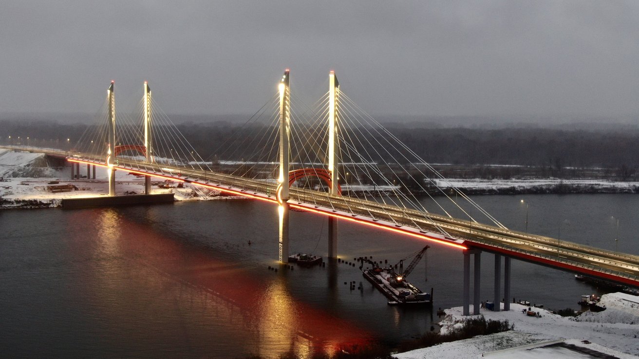 Среди строящихся региональных объектов – мосты через Обь в Сургуте и Новосибирске, мост через Лену в Якутске, строящийся в условиях вечной мерзлоты, а также новый мост через Волгу в Ярославле и через Оку в Рязани.